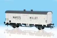| ROCO | Coffret de huit wagons SNCF, époque III de très bonne facture, roulement irréprochable, boîtiers NEM, timons à élongation... : · un wagon plat à ranchers amovibles Jhor 122407 · un wagon à bord bas Tow 615552 · un wagon tombereau Tow 653286 · un wagon couvert Lw 7494211 · un wagon tombereau Tow 653220 · un wagon couvert Kr 438748 · un wagon isotherme «Marcel Millet» HI 50524 · un wagon à trappes mobiles pour transport de chaux STw 750069 |